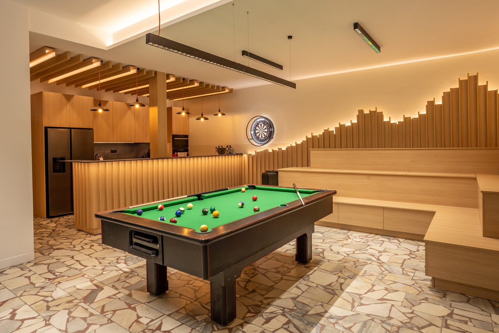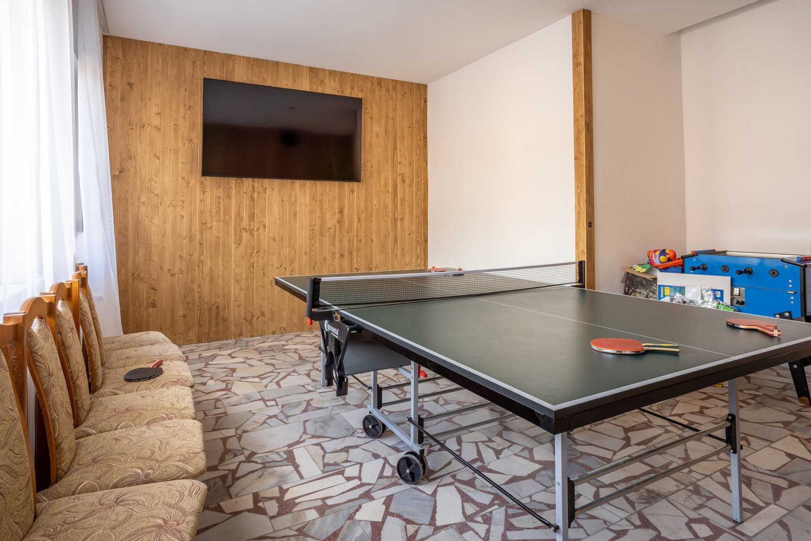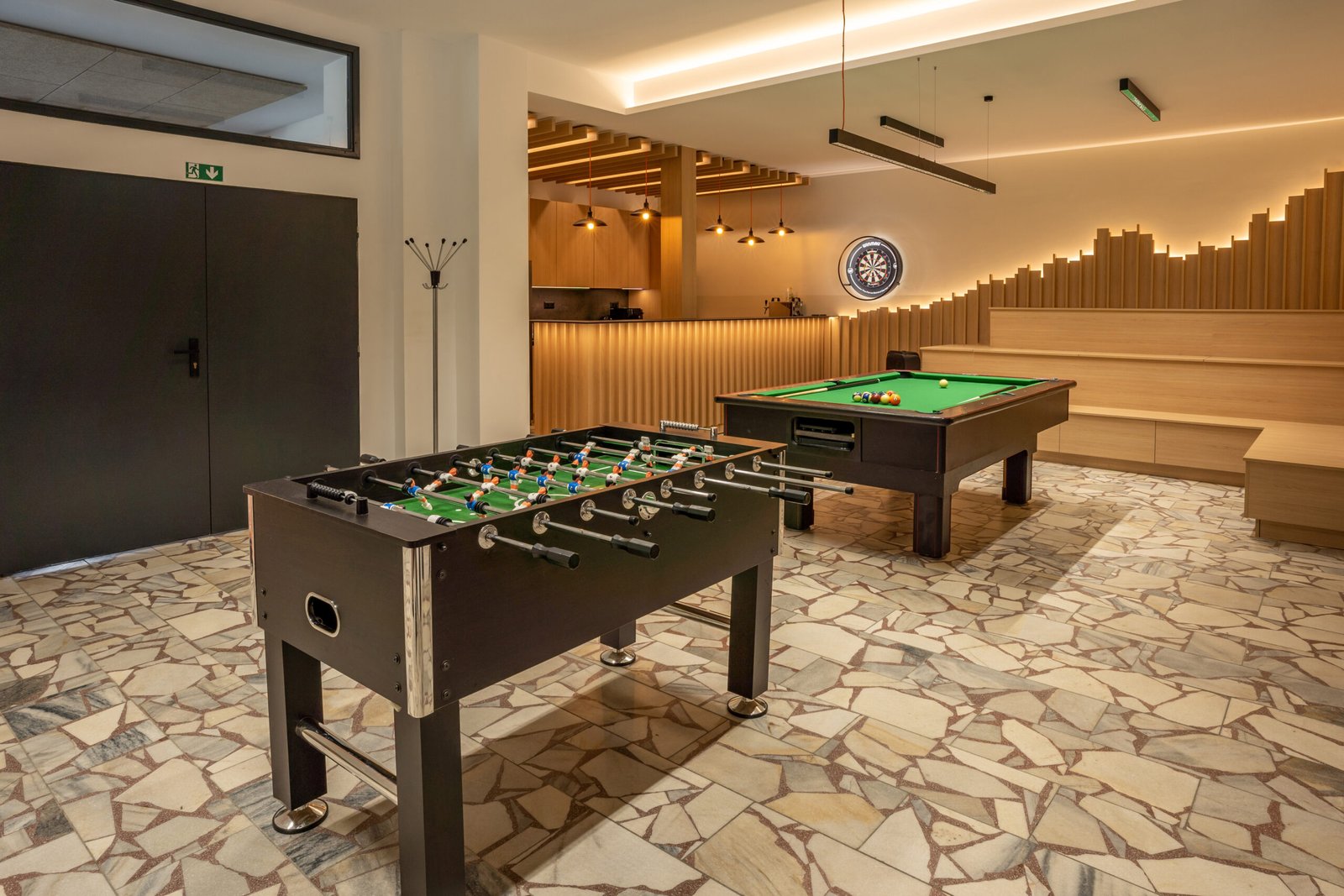 Pool, fire pit, billiards, and foosball for group entertainment